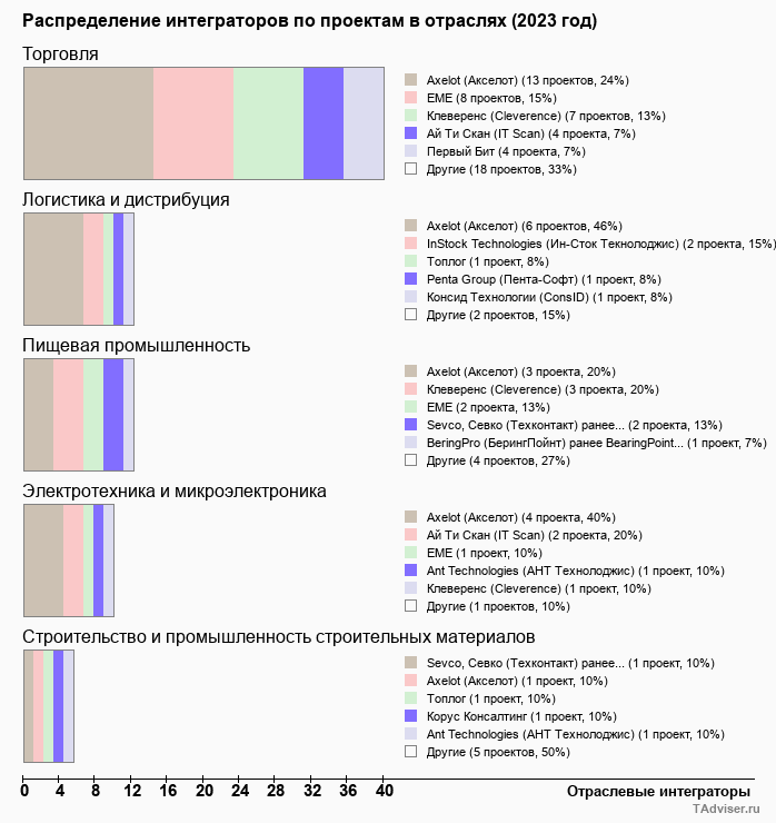 Отраслевое распределение по количеству проектов внедрений